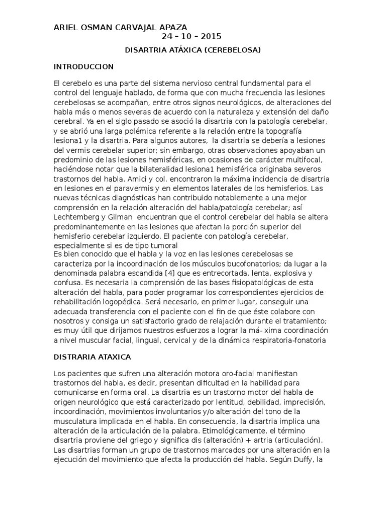 Listas Disartria Ataxica Fresco. Las enfermedades mitocondriales son un grupo muy heterogéneo de trastornos que surgen como resultado de la disfunción de la cadena respiratoria mitocondrial. Los tipos de disartria que veremos en este apartado difieren entre ellos principalmente en la localización de la lesión a nivel del sistema nervioso central. La disartria consiste en una alteración de la articulación del lenguaje, mientras la disfasia es un defecto en los mecanismos receptivos, expresivos o integradores del lenguaje. Son el resultado de mutaciones espontáneas o heredadas, ya sea en el adn mitocondrial o en el adn nuclear.